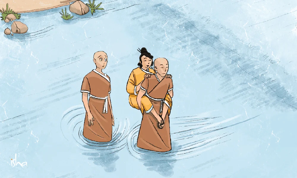 Tanzan replied, “I set her down hours ago by the riverside. Why are you still carrying her?”